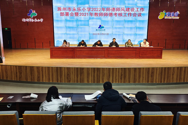 为了深入贯彻落实习近平总书记在全国教育工作会议上的重要讲话精神,进一步加强该校教师师德师风建设,努力培养造就一支师德高尚、业务精湛、结构合理、充满活力的新时代高素质专业化教师队伍。2月21日下午,滁州市永乐小学召开了2022年师德师风建设工作部署会暨2021年教师师德考核工作会议。会议由校长杜佐运主持,全体教师共同参加。
